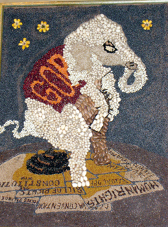 Back to page topWhat about these items? It seems that GOP art is more utilitarian, whether it's an envelope, bottle, T-shirt or cuddly elephantine friend.