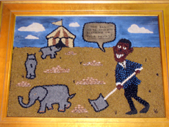 Back to page topIt's not political but, one year, I recall seeing a seed art depiction of Bjork, that lovable Icelandic pixie. Perhaps there's just a certain type of person drawn to making seed art. It could be the hottest trend among left-leaning indie-rock fans. That, and the occasional anarchist knit-circle could be their main hobbies.