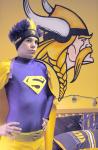 But come game day, the 2007 Chaska High School grad transforms from a regular guy into a caped crusader. Donning royal purple and gold spandex, Theis becomes Superfan, ready to engage crowds and cheer his Minnesota Vikings onto victory at a moment’s notice.