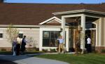 Paul and Sheila Steiner cut the ceremonial ribbon at the Marie Steiner Kelting Hospice Home last week. The Steiners gifted money to Ridgeview Medical Center for the hospice in the name of Paul's late sister Marie. The 5-bed hospice, slated to open this fall, is located on the shores of Lake Bavaria. (Photo by Mollee Francisco)