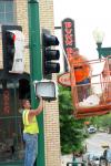 The downtown business district has wanted the lights for years. The December 2008 death of pedestrian Jerome Meuwissen at the intersection mobilized many downtown residents and parishoners who lobbied the city and MnDOT for the stoplight.